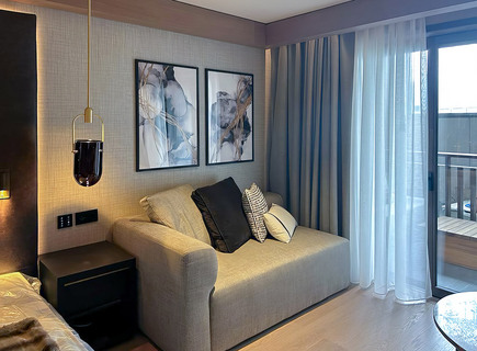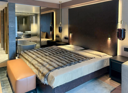 In Crans-Montana, nestled in the heart of the Swiss Alps, stands a luxurious 5-star hotel furnished by Imago. We consider it essential, especially for this category of establishments, to approach every project with meticulous care, from the initial stages of design to its realization. For this reason, one of the design phases we implement is the live realization of the environments. We have an internal space within the company, the mock-up area, where we construct the rooms we design on a full scale, allowing us to examine every single detail carefully to ensure the result that both we and the client desire, thereby eliminating any margin of error before its final realization.